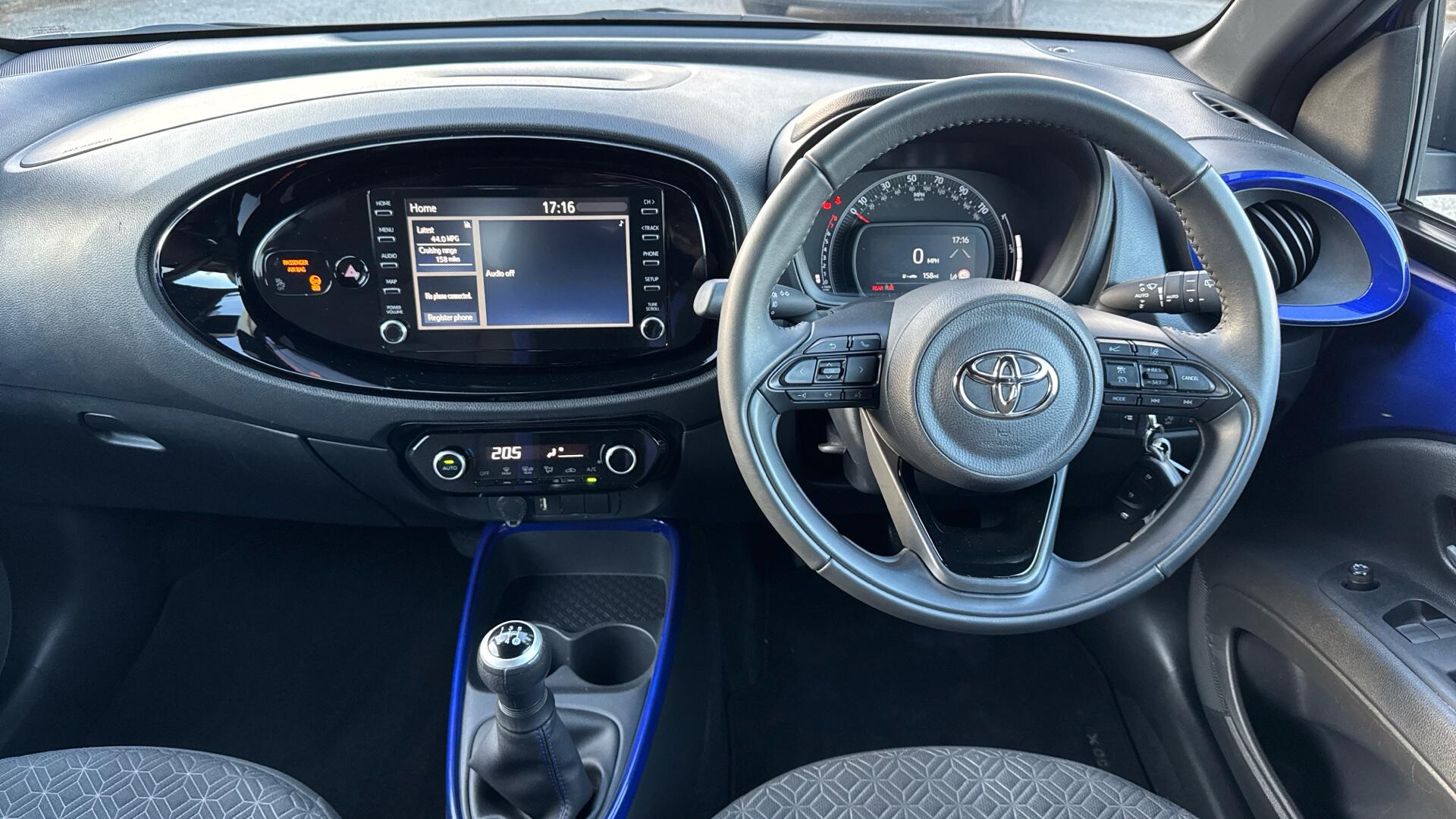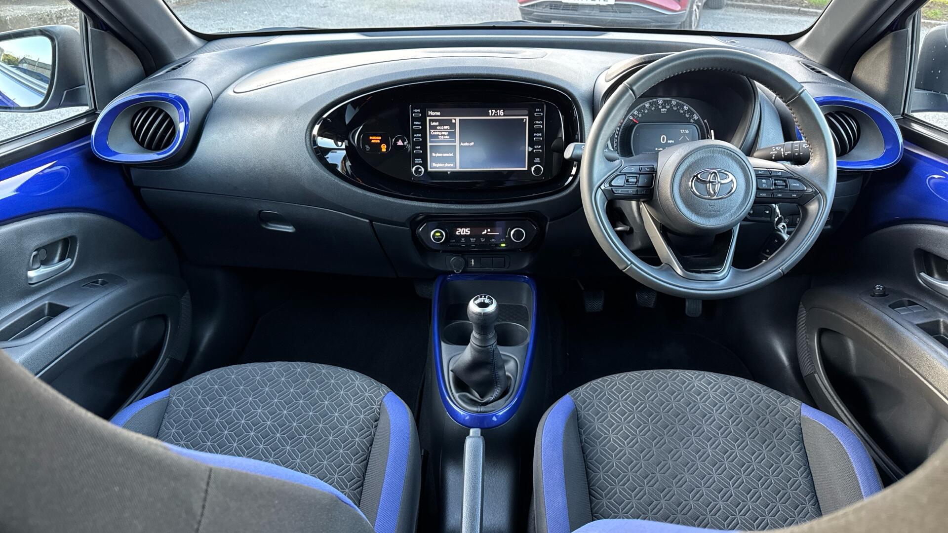 This 2023 Toyota Aygo 1.0 VVT-i Edge Manual has covered 17,524 miles and delivers an impressive 58.85 mpg combined, making it an ideal choice for economical everyday driving. The 8in Toyota Touch multimedia system with Bluetooth keeps you connected on the move, while the 4.2in colour multi-information display ensures key information is clear at a glance. Automatic air conditioning, auto headlights and wipers make daily journeys effortless, and ABS with Emergency Brake-Light System adds reassurance in busy traffic. With four seats and a practical 264-litre boot, it is perfectly suited to city life and weekend trips alike.