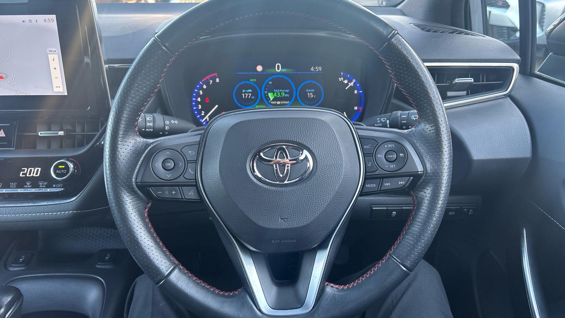 This 2023 Toyota Corolla 2.0 VVT-h GR SPORT Hybrid Automatic has covered 23,314 miles and combines strong performance with excellent efficiency, delivering 193 bhp and up to 61.41 mpg combined. The 10.5in fully touchscreen multimedia system and 12.3in full digital combimeter create a modern, driver-focused cabin, while Adaptive Cruise Control with Speed Limiter makes motorway journeys effortless. Dual-zone automatic air conditioning ensures comfort for all passengers, and features such as Automatic High Beam and a reversing-friendly electronic parking brake add everyday convenience. A refined, sporty hatchback perfectly suited to both commuting and longer trips.
